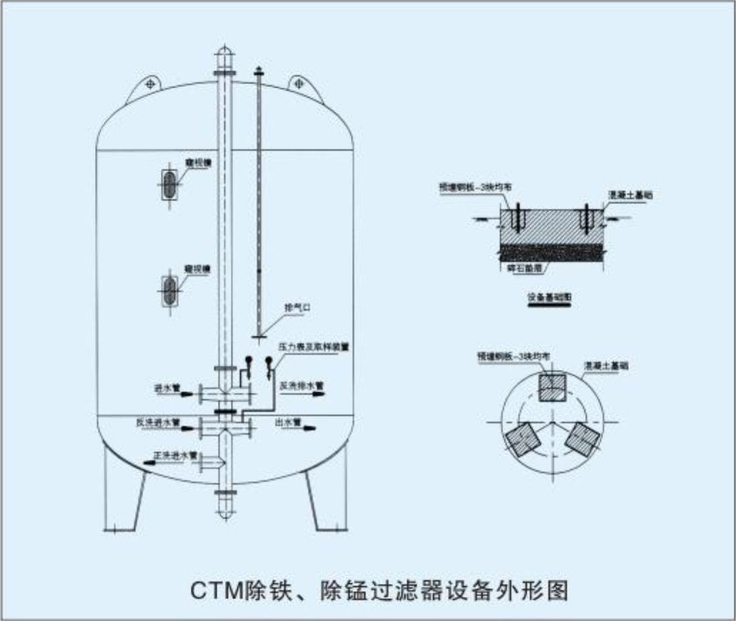 CTM除鐵、除錳過(guò)濾器適合中小城鎮(zhèn)、農(nóng)村供水、工礦企業(yè)自來(lái)水源的地下水除鐵及工業(yè)用水軟化,除鹽工藝的預(yù)處理。